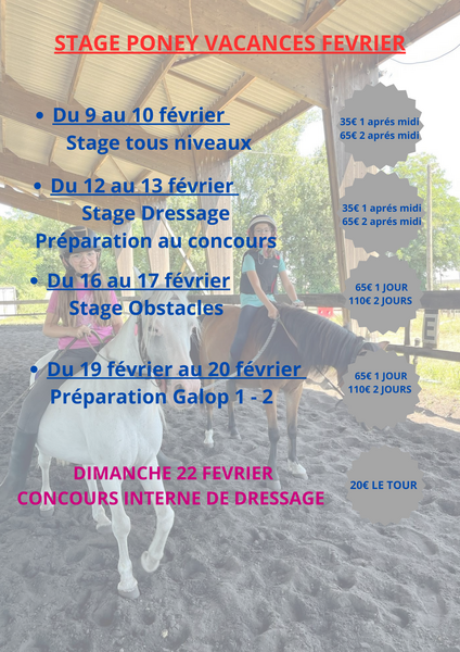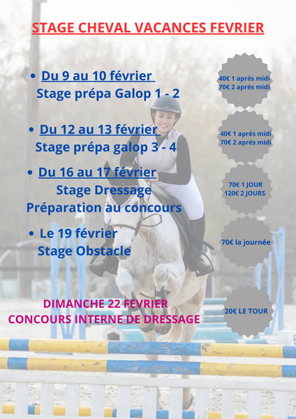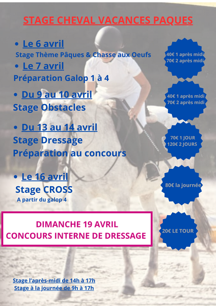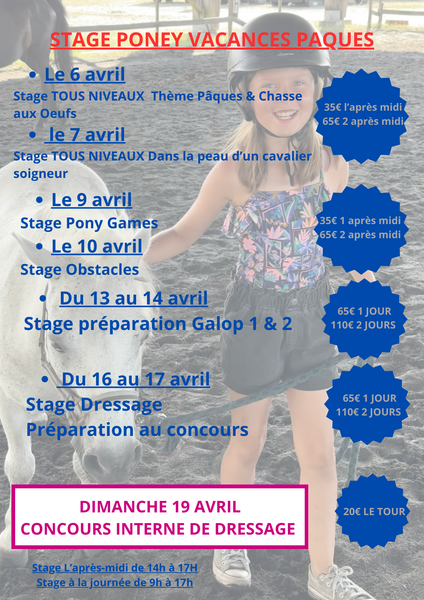 Les stages de l’après midi sont de 14h à 17h. Pour ceux à la journée c’est de 9h à 17h